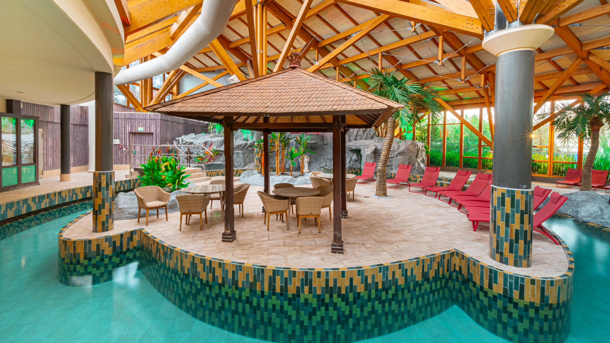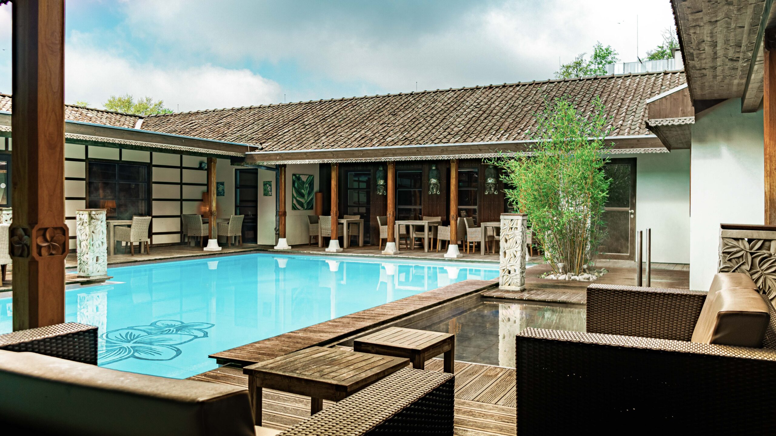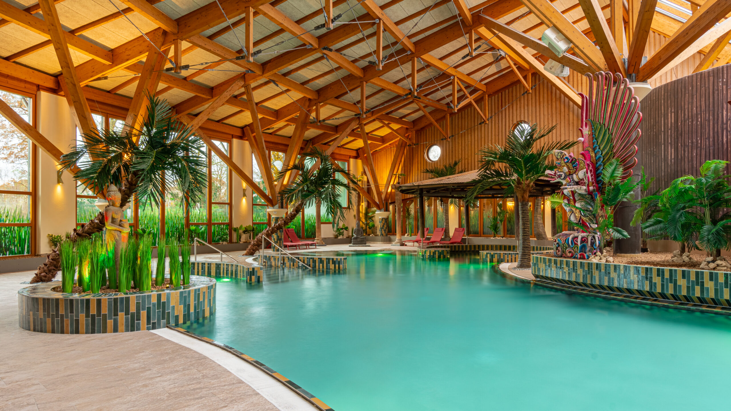 Die Bali Therme in Bad Oeynhausen verbindet fernöstliches Ambiente mit moderner Wellnesskultur. Palmen, warme Holztöne, kunstvolle Details und beruhigende Klänge schaffen eine Atmosphäre, die dich vom ersten Moment an in den Urlaubsmodus versetzt.