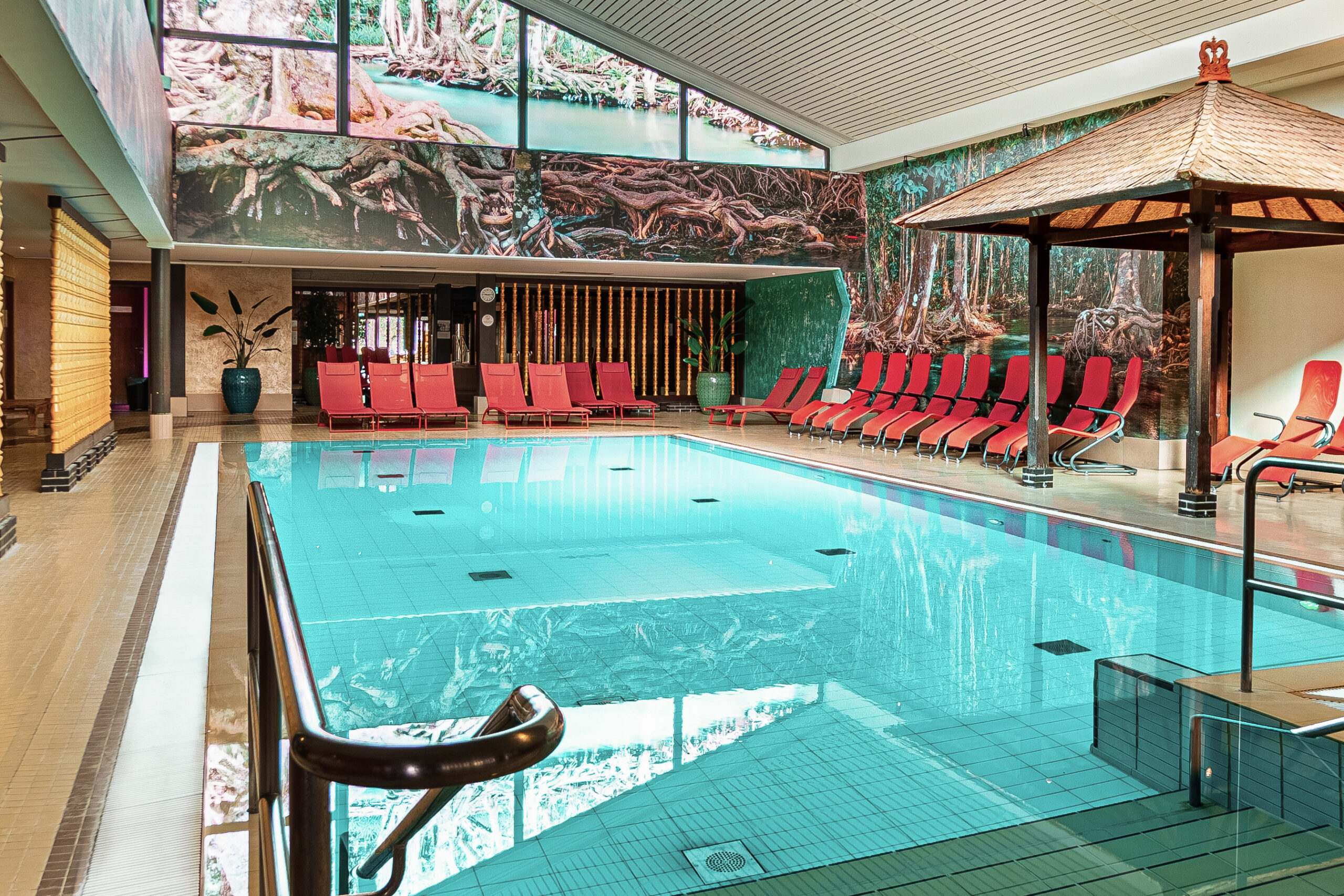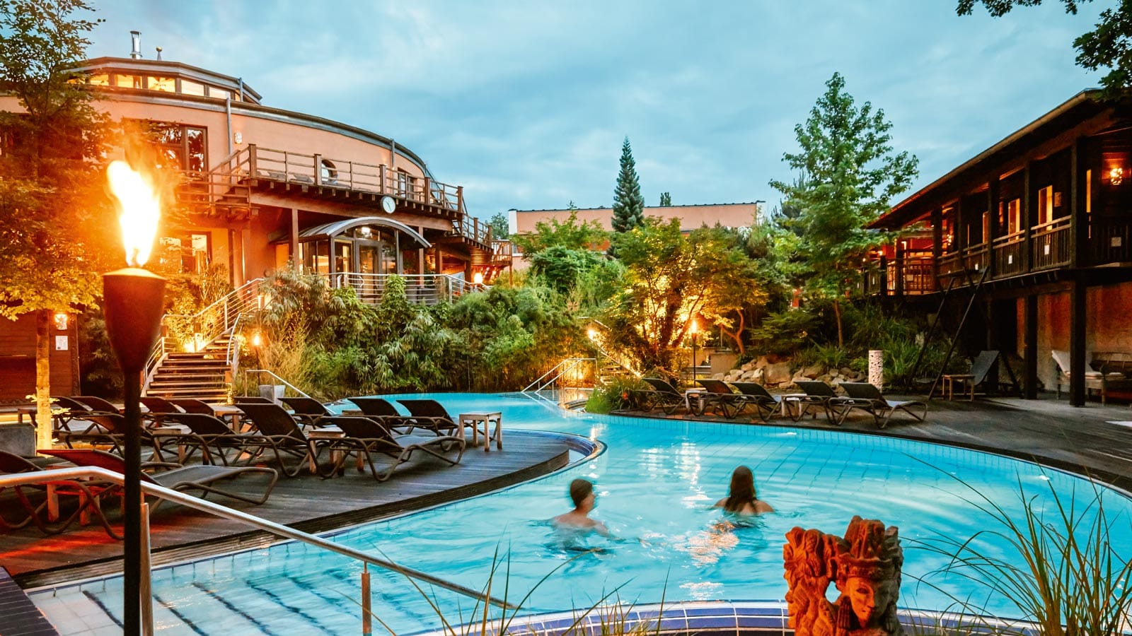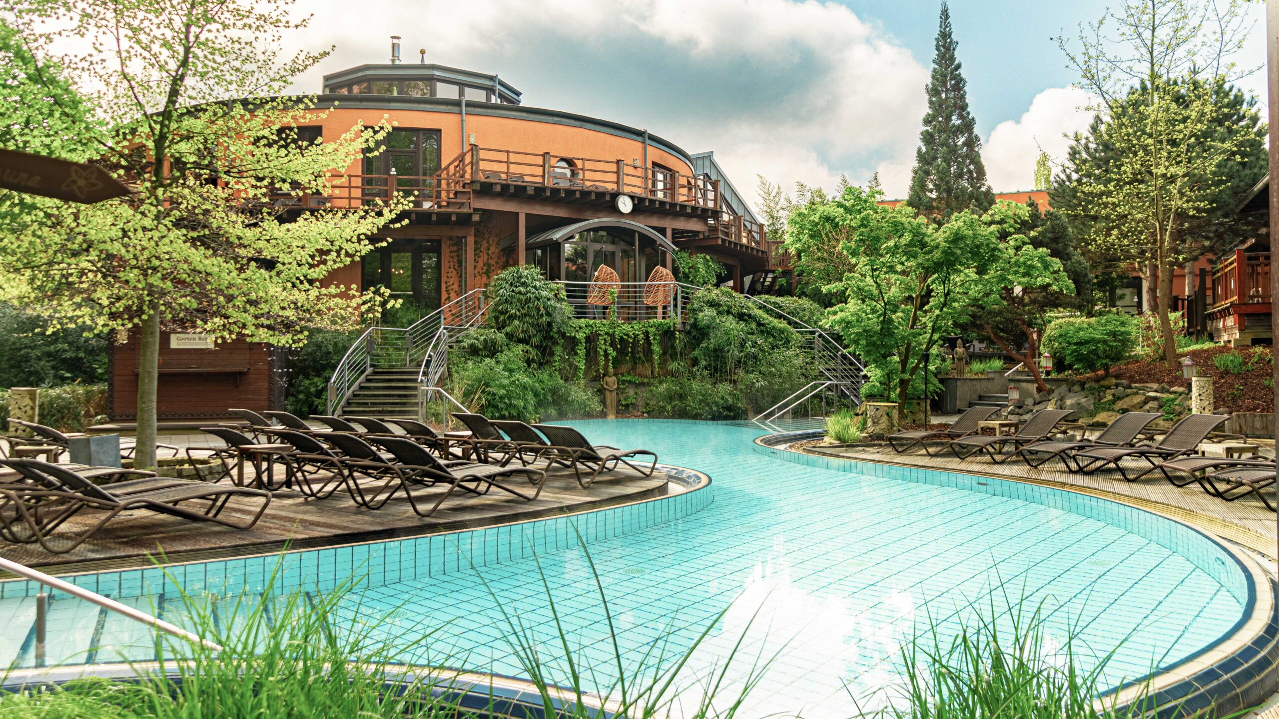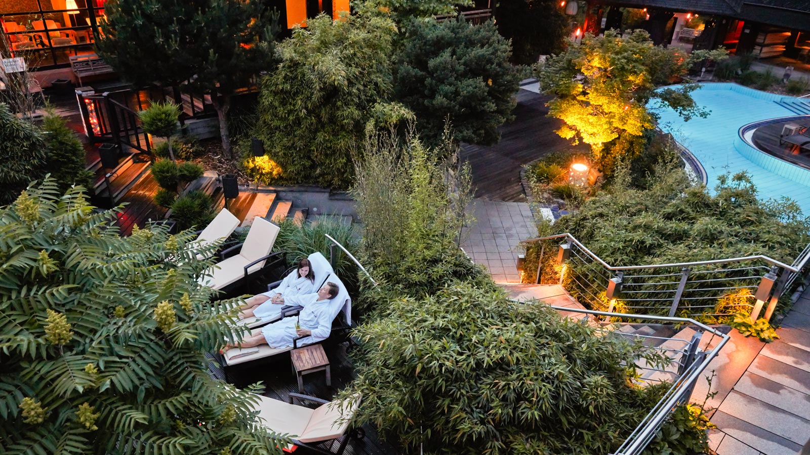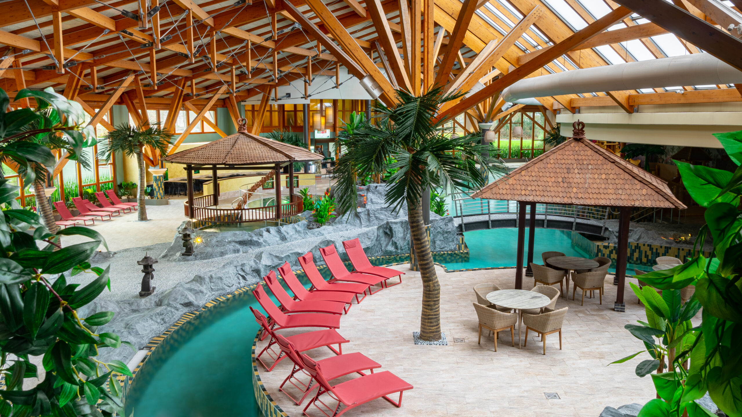 Ein weiteres Highlight ist die balinesisch gestaltete Saunawelt mit verschiedenen Themensaunen, regelmäßigen Aufgussritualen und Ruheräumen mit asiatischem Flair. Ergänzt wird das Angebot durch professionelle Massagen, Kosmetikanwendungen und Yoga-Kurse.