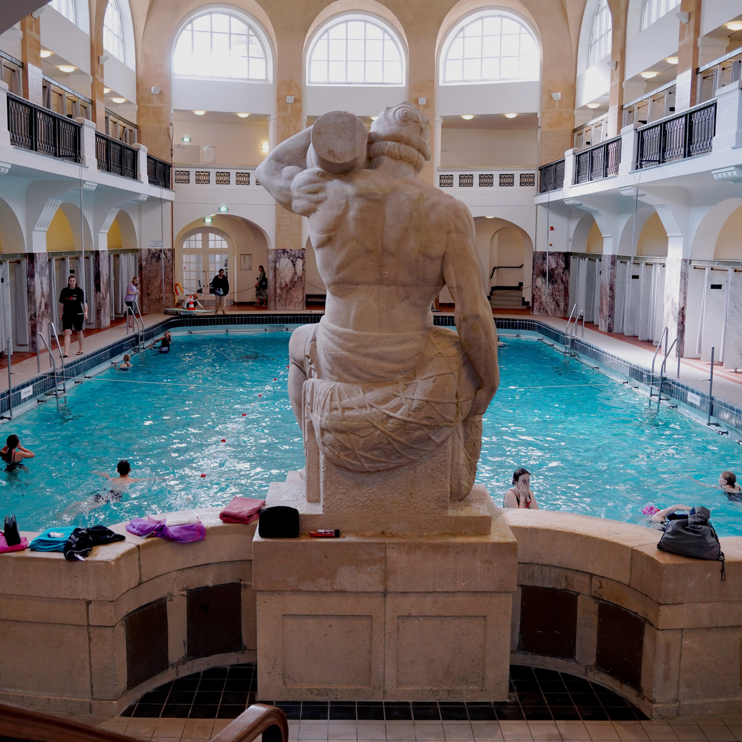 Im großen Becken schwimmt man unter einer prachtvollen Kuppel, flankiert von Marmorsäulen, schmiedeeisernen Geländern und nostalgischen Einzelumkleiden. Für viele Aachener*innen ist die Halle ein emotionaler Ort: „Hier habe ich schwimmen gelernt“ ist ein Satz, der oft fällt. Auch heute ist sie vor allem bei Schwimmerinnen und Schwimmern beliebt, die ungestört ihre Bahnen ziehen möchten.